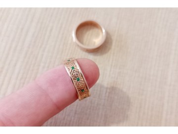 Обережное кольцо из золота Одолень трава и Цветок папоротника