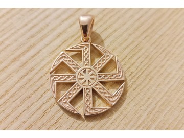 Двухсторонний оберег Алатырь-Коловрат с Солнцем из золота